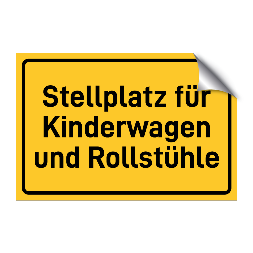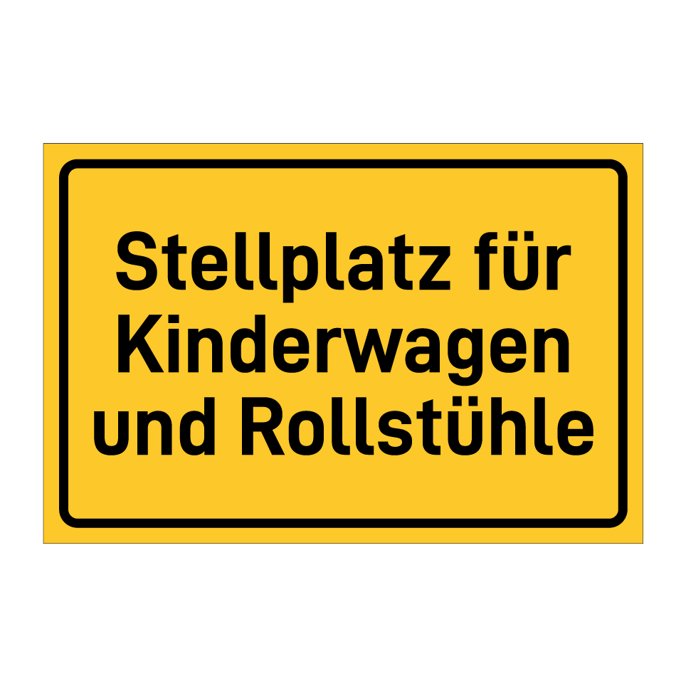 Hinweisschild mit dem Text Stellplatz für Kinderwagen und Rollstühle