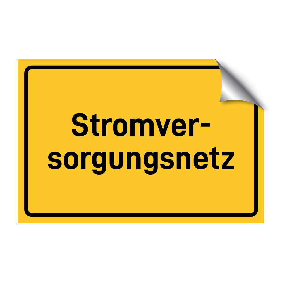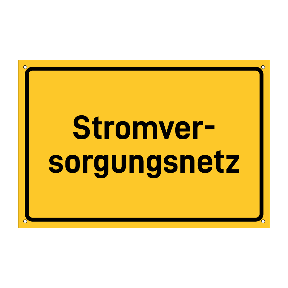 Hinweisschild mit dem Text Stromver- sorgungsnetz