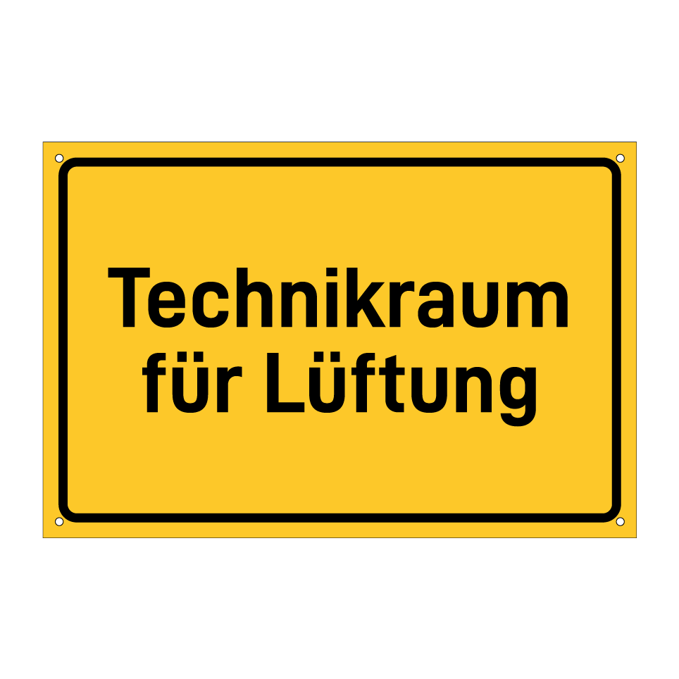 Hinweisschild mit dem Text Technikraum für Lüftung