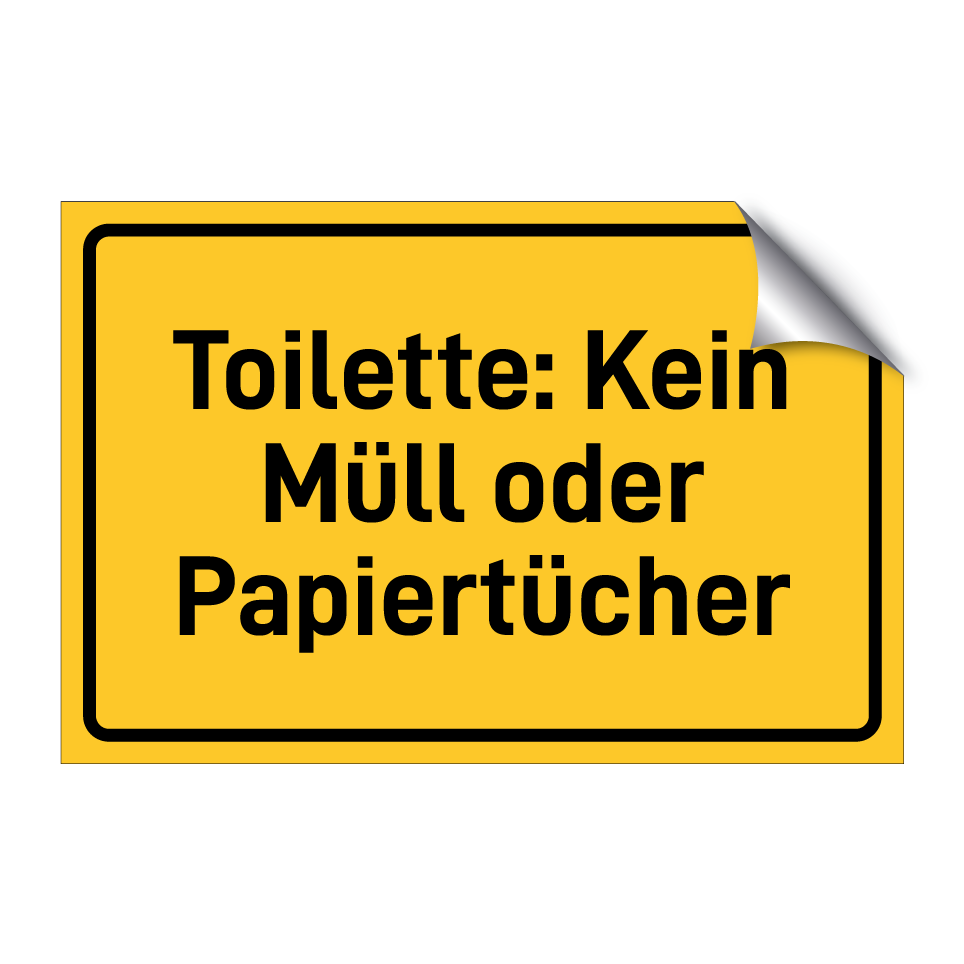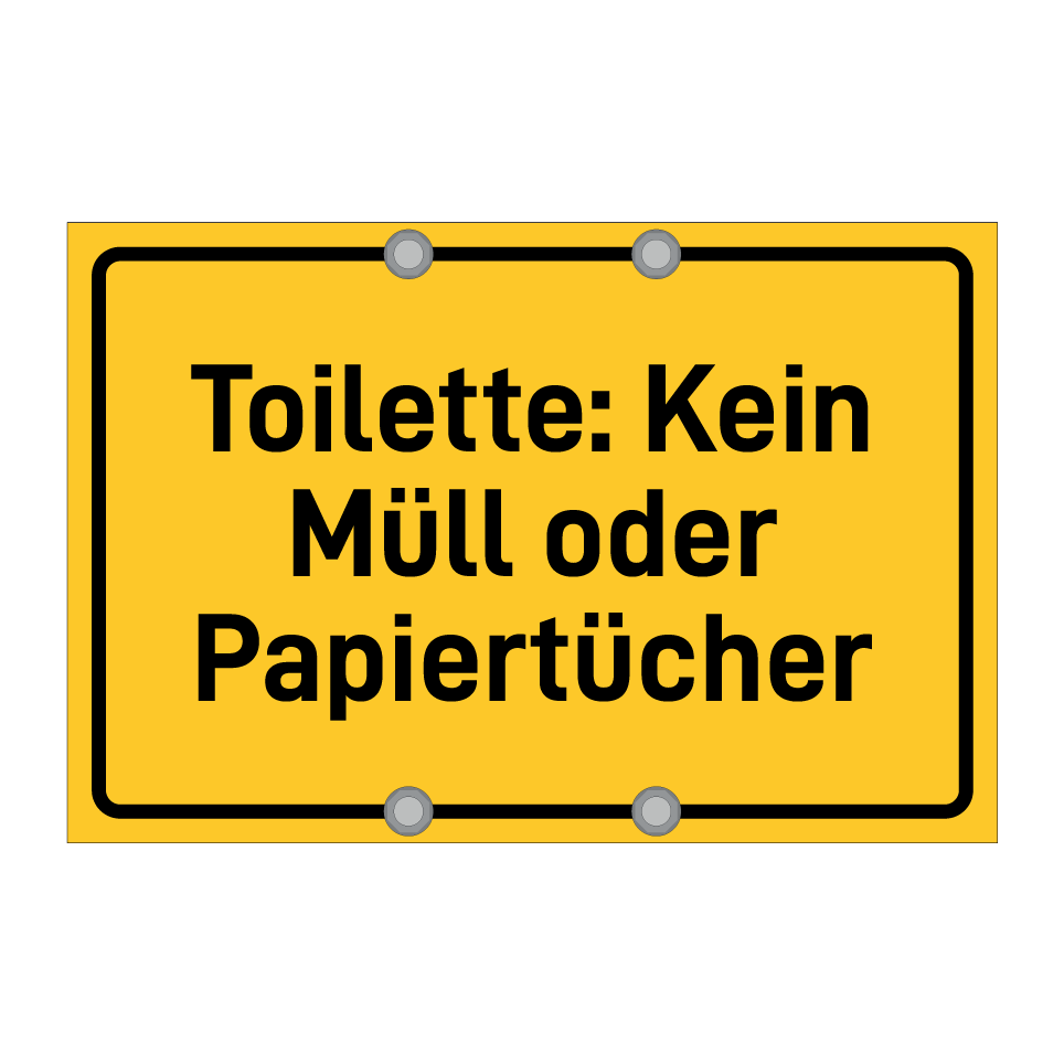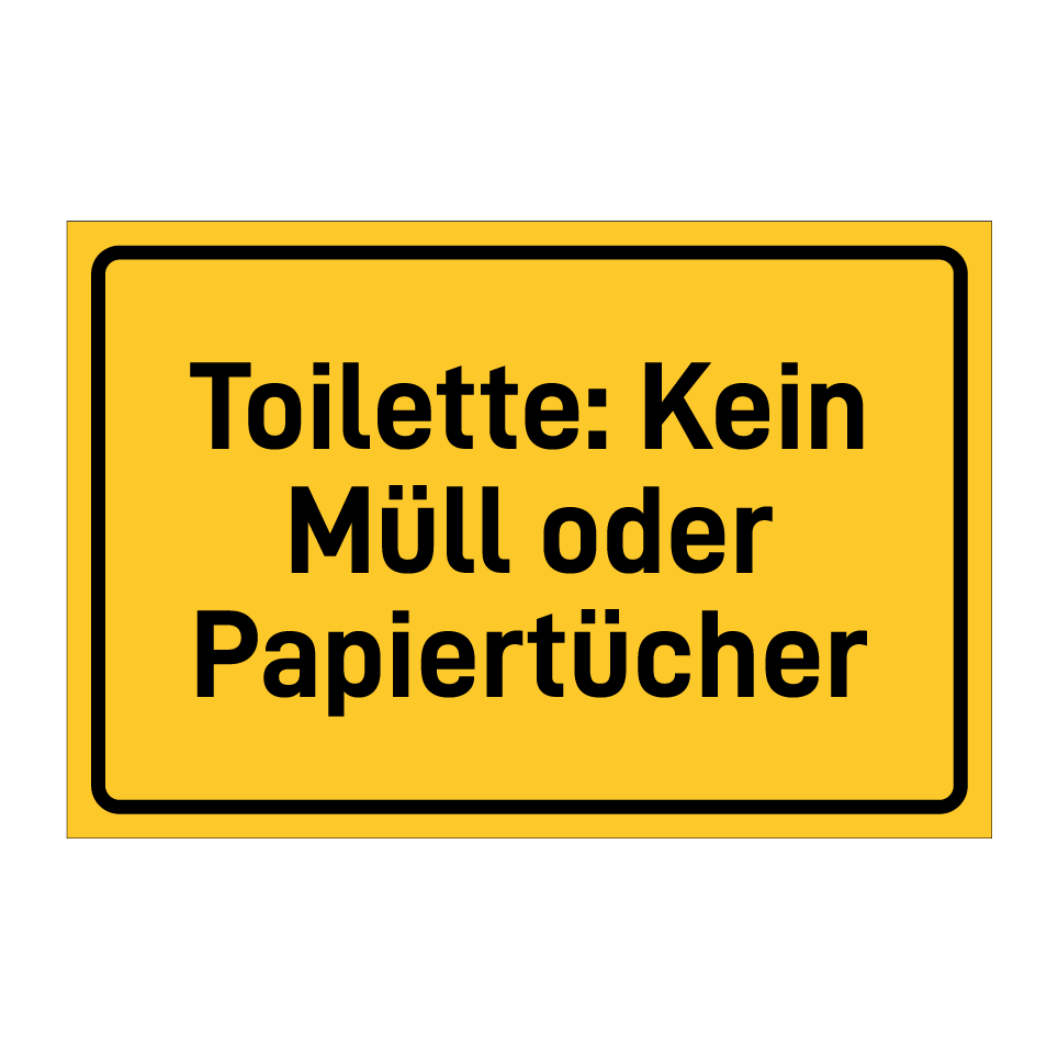 Hinweisschild mit dem Text Toilette: Kein Müll oder Papiertücher