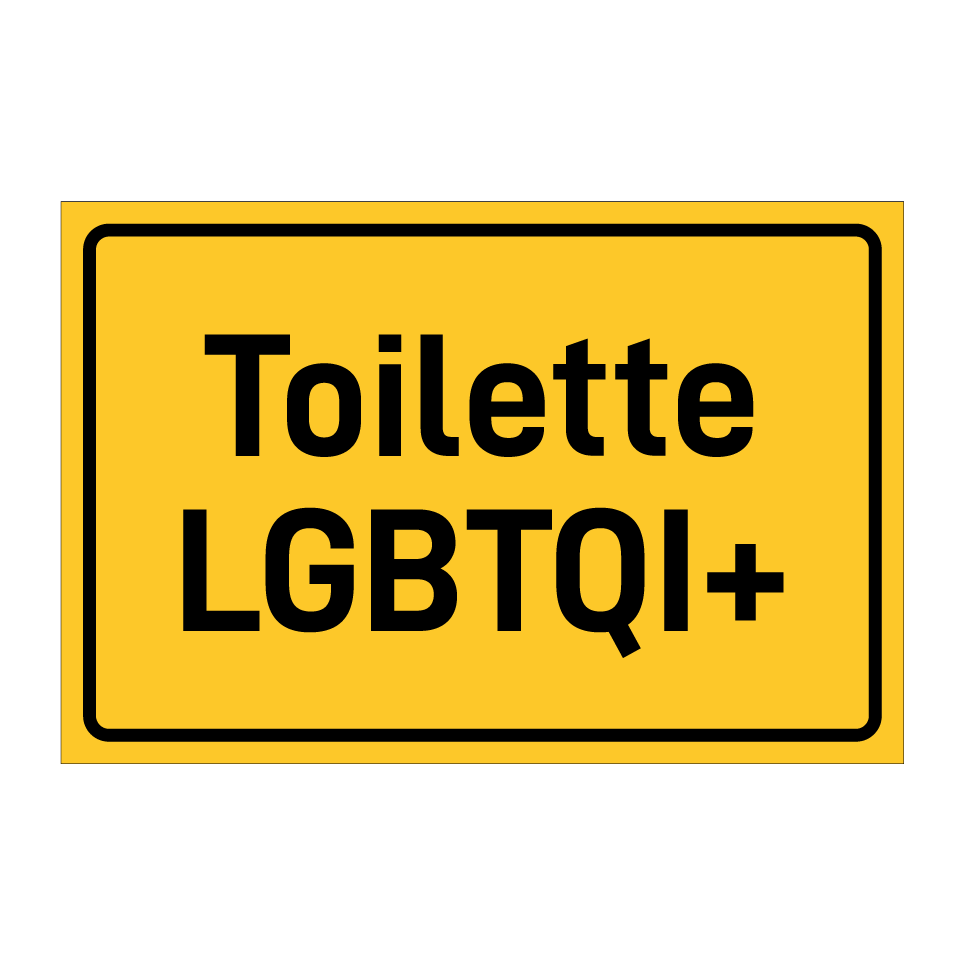 Hinweisschild mit dem Text Toilette LGBTQI+