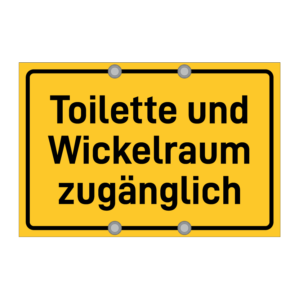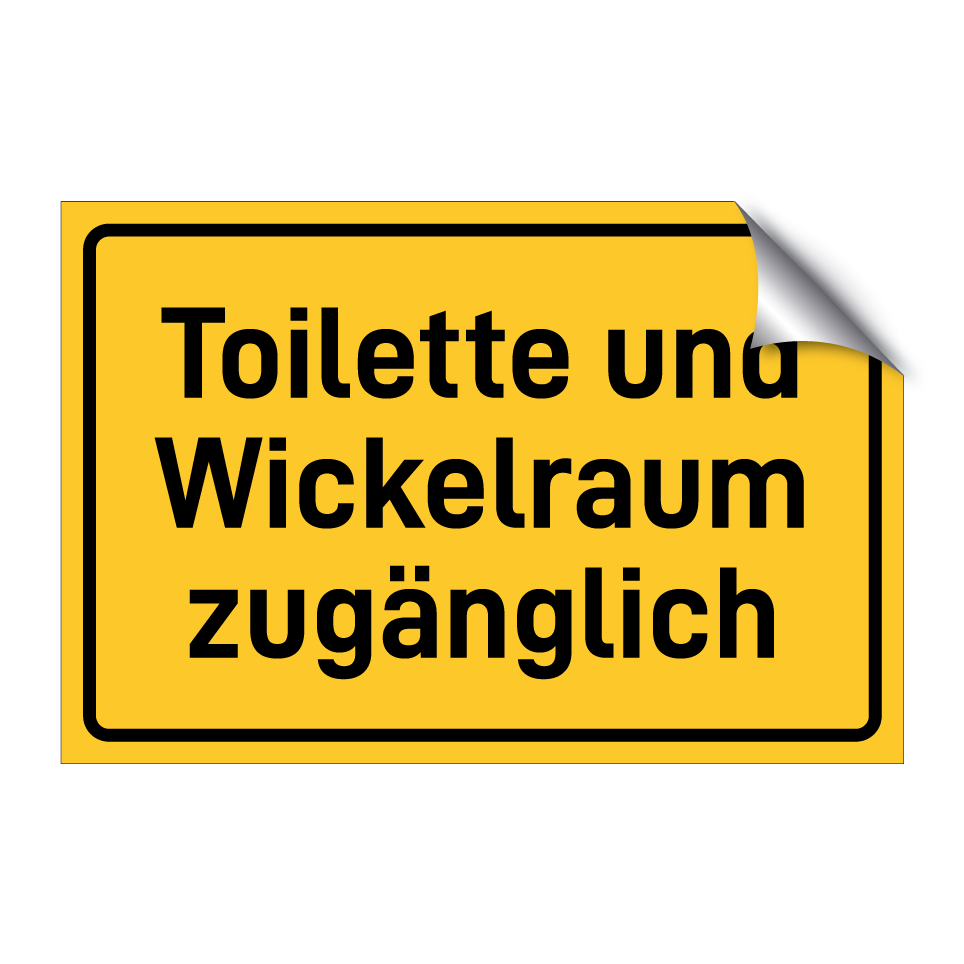 Hinweisschild mit dem Text Toilette und Wickelraum zugänglich