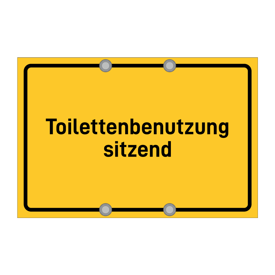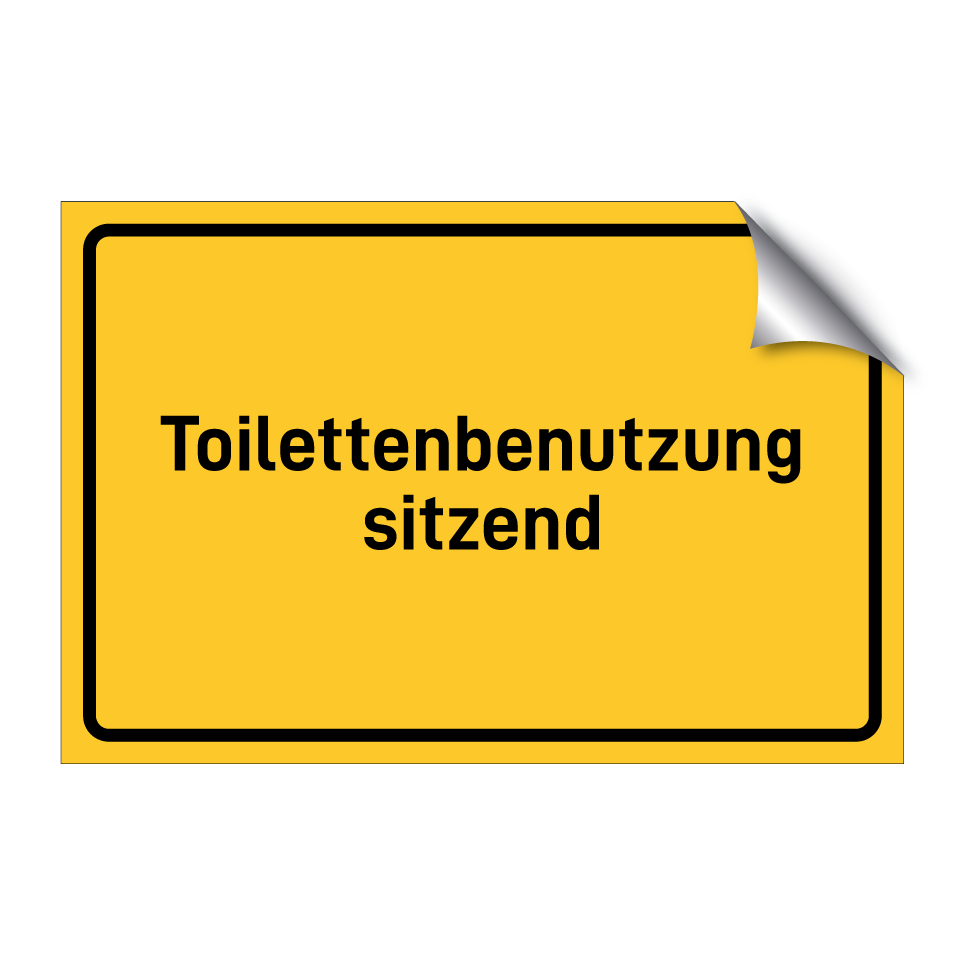 Hinweisschild mit dem Text Toilettenbenutzung sitzend