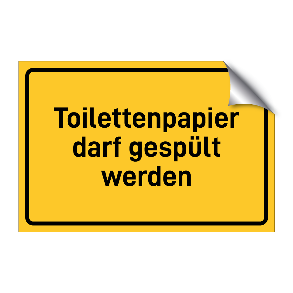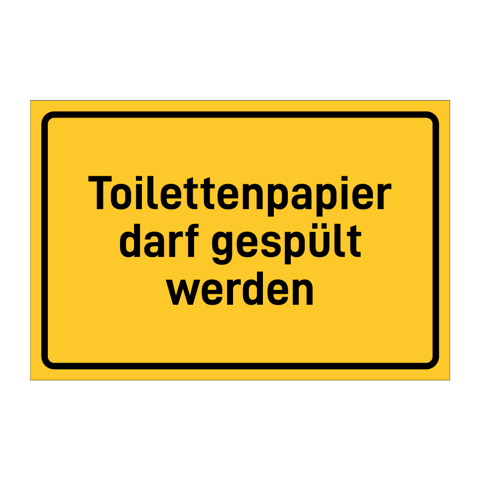 Hinweisschild mit dem Text Toilettenpapier darf gespült werden