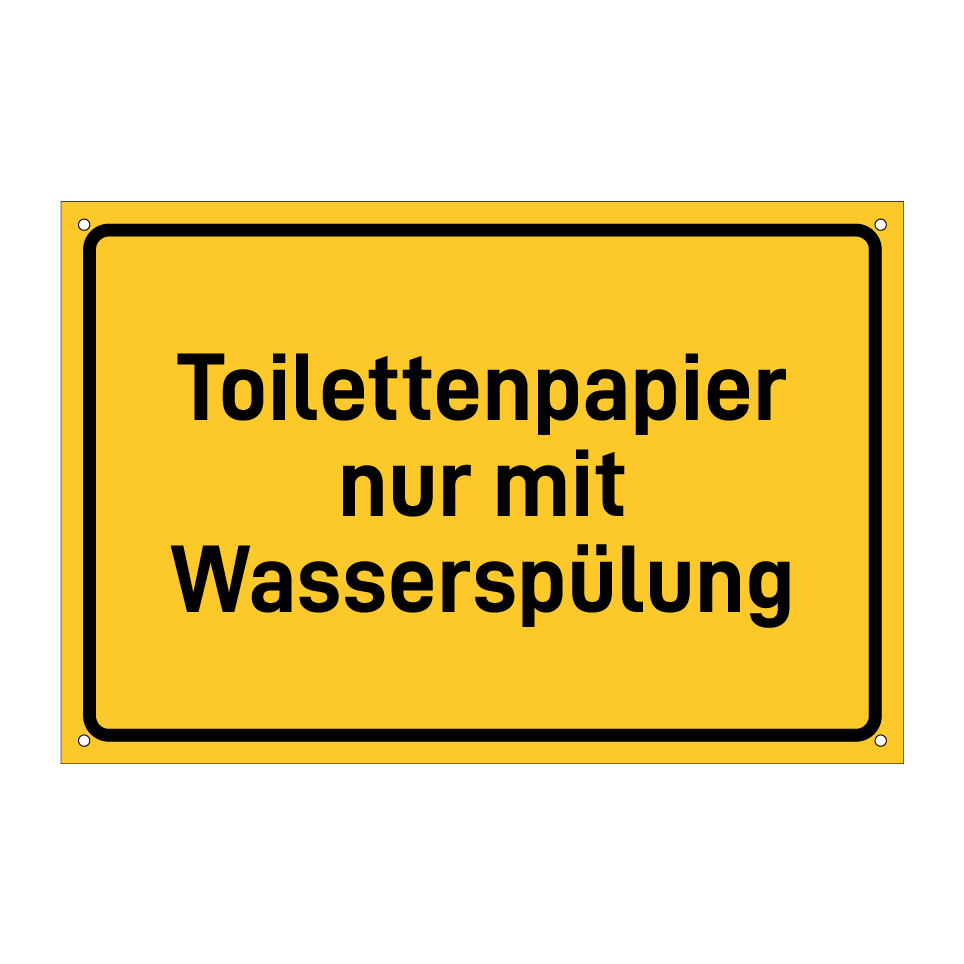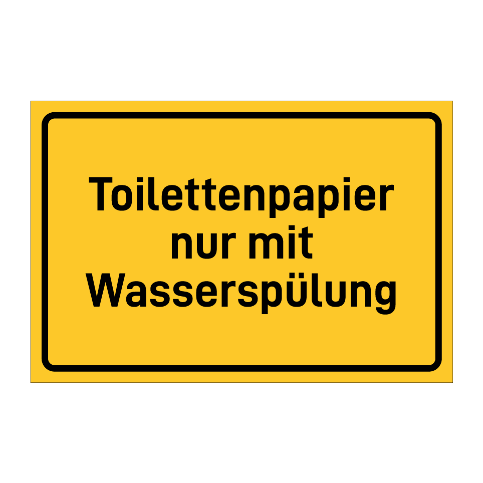 Hinweisschild mit dem Text Toilettenpapier nur mit Wasserspülung