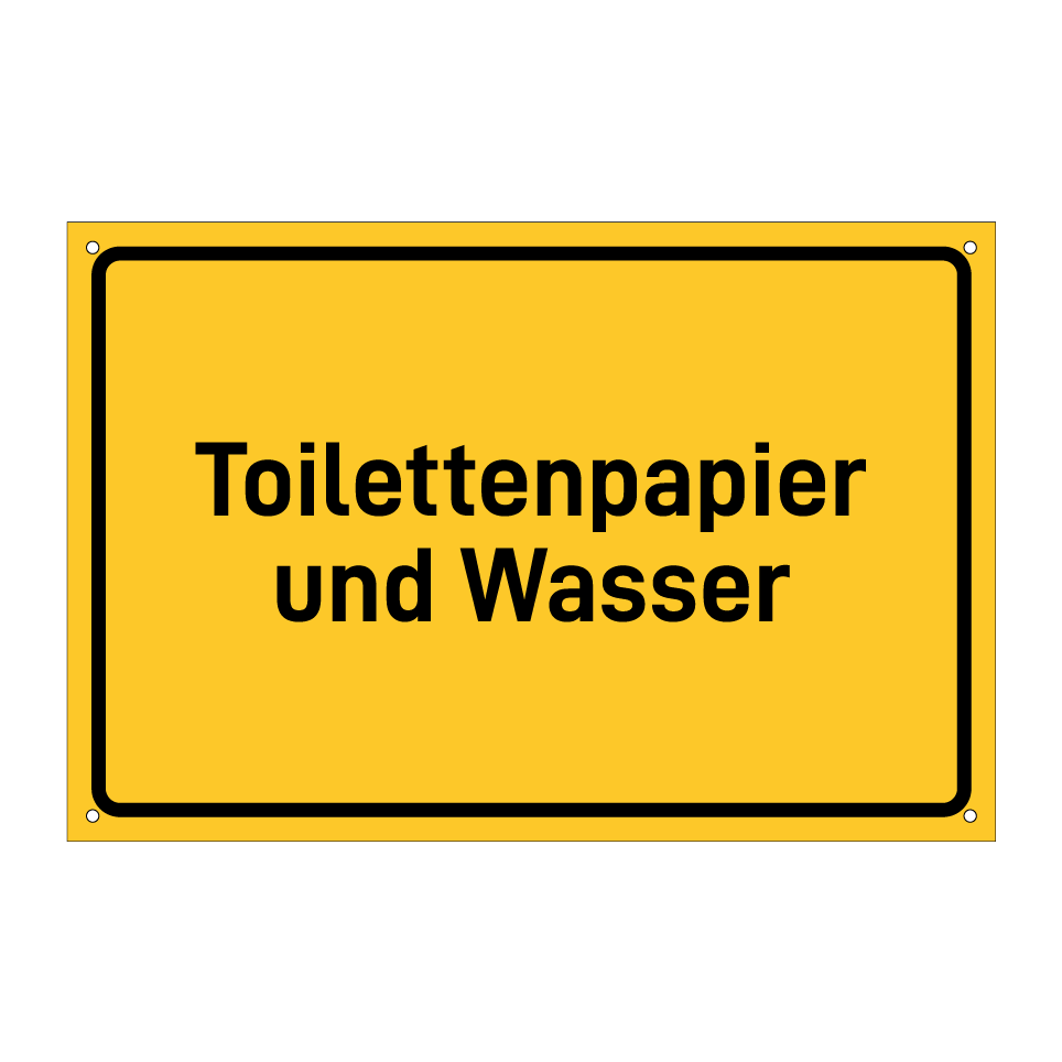 Hinweisschild mit dem Text Toilettenpapier und Wasser