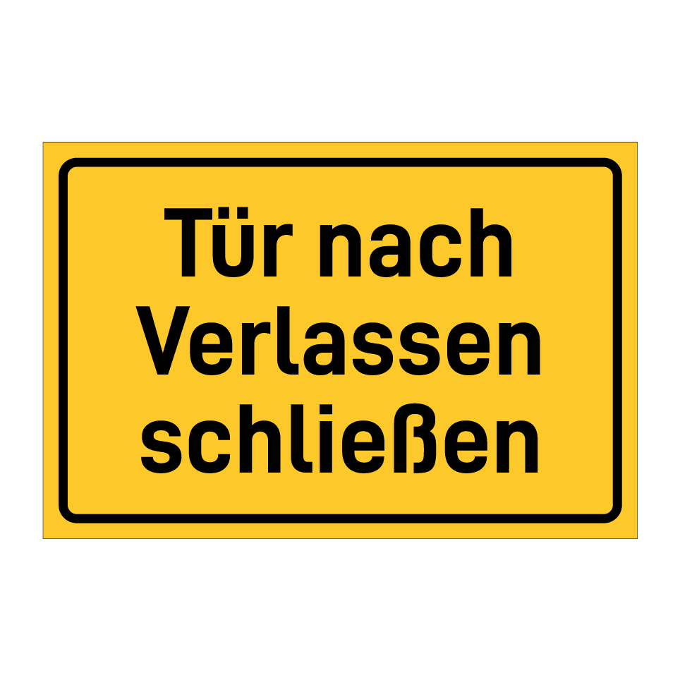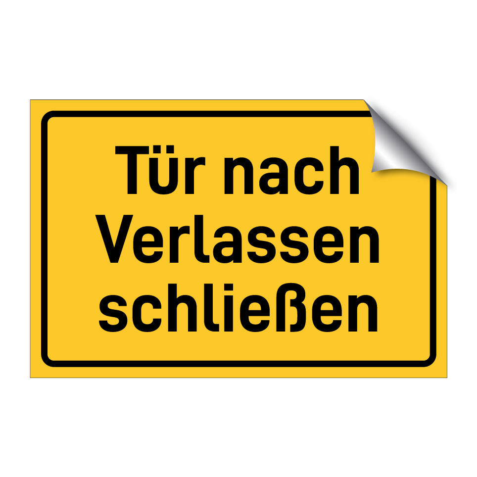 Hinweisschild mit dem Text Tür nach Verlassen schließen
