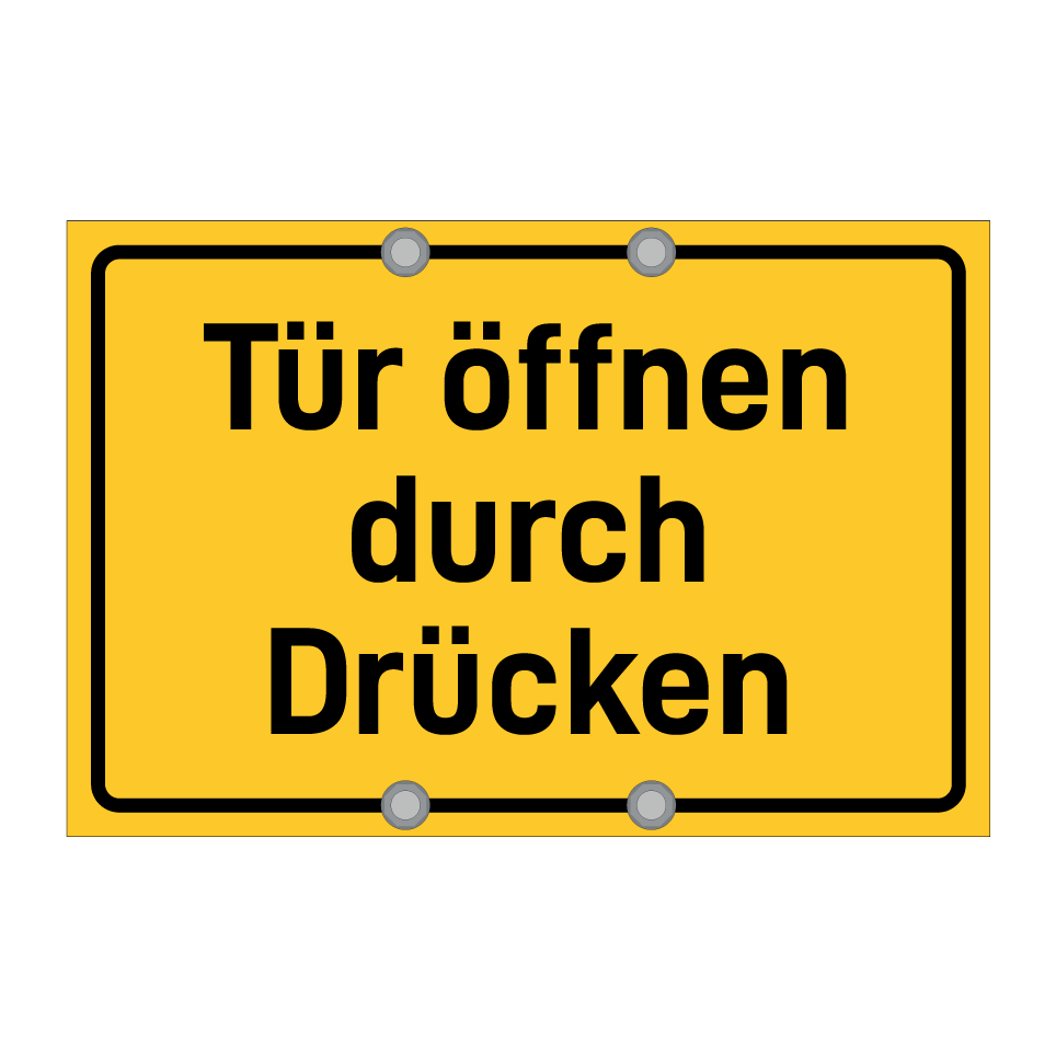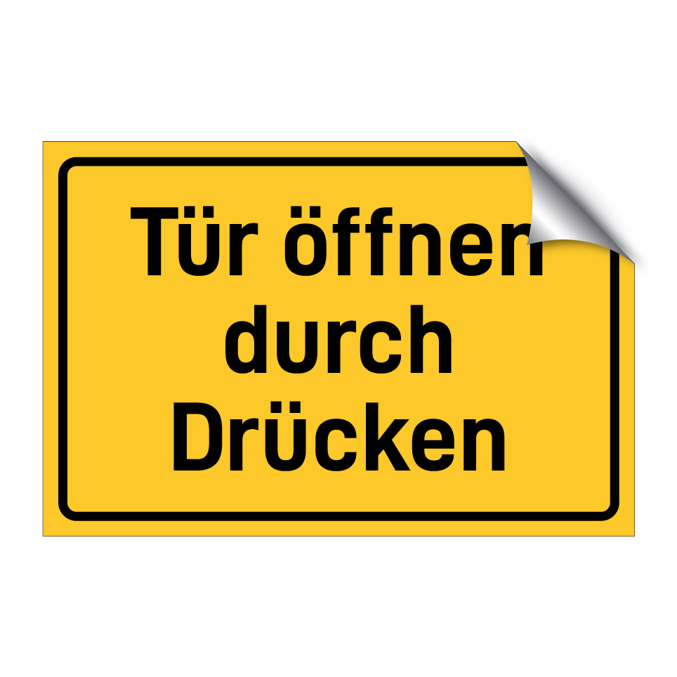 Hinweisschild mit dem Text Tür öffnen durch Drücken