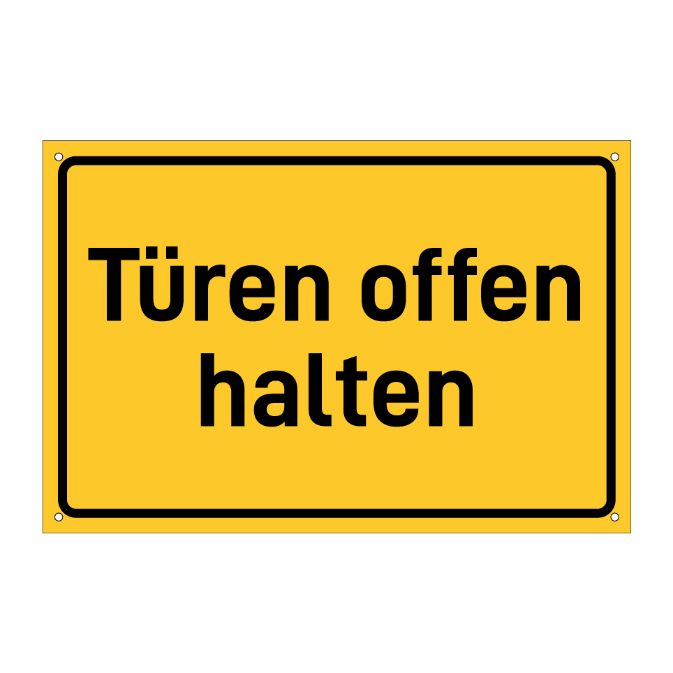 Hinweisschild mit dem Text Türen offen halten