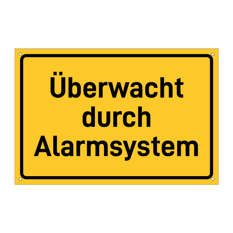Hinweisschild mit dem Text Überwacht durch Alarmsystem