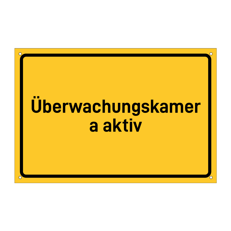 Hinweisschild mit dem Text Überwachungskamera aktiv