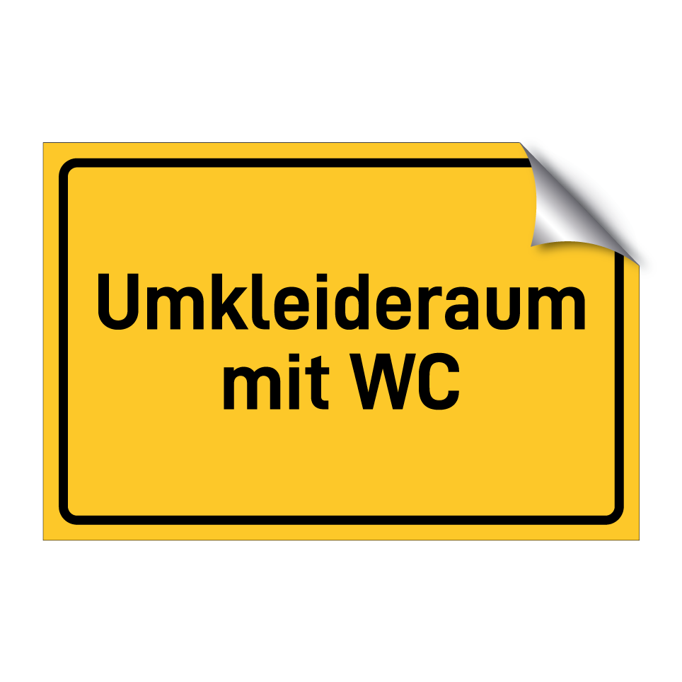 Hinweisschild mit dem Text Umkleideraum mit WC