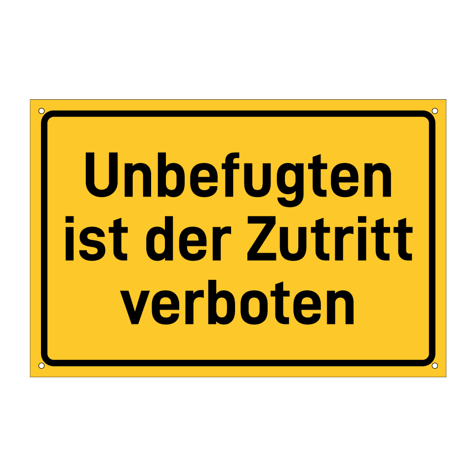 Hinweisschild mit dem Text Unbefugten ist der Zutritt verboten
