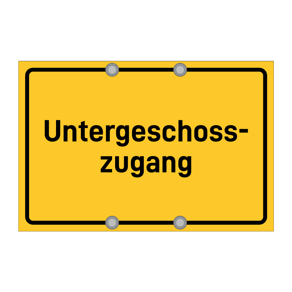 Hinweisschild mit dem Text Untergeschoss- zugang