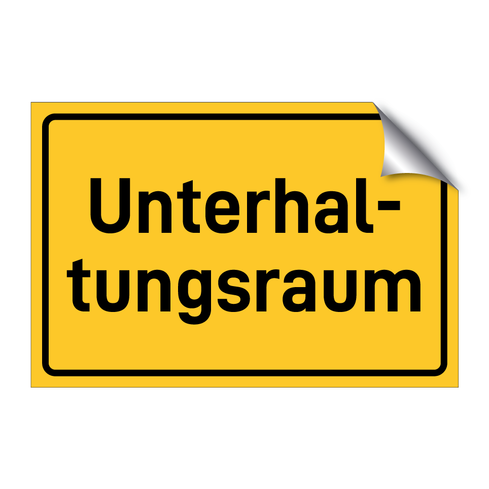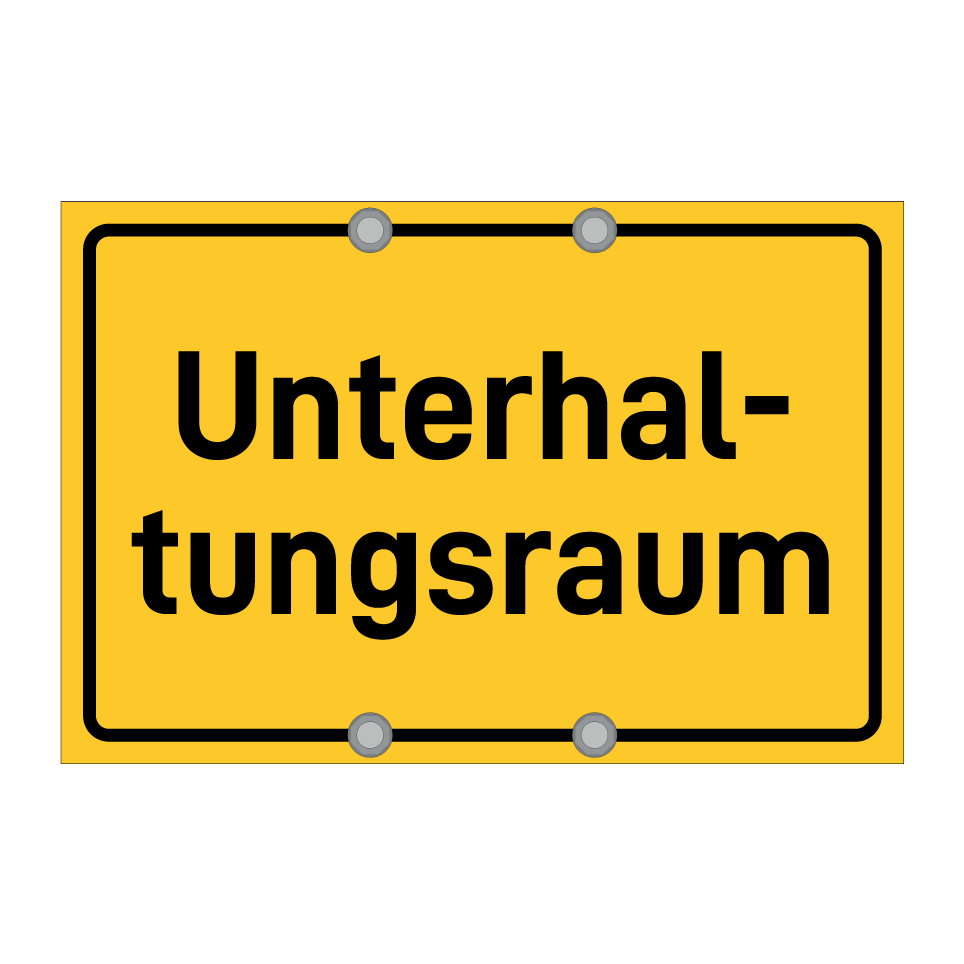 Hinweisschild mit dem Text Unterhal- tungsraum