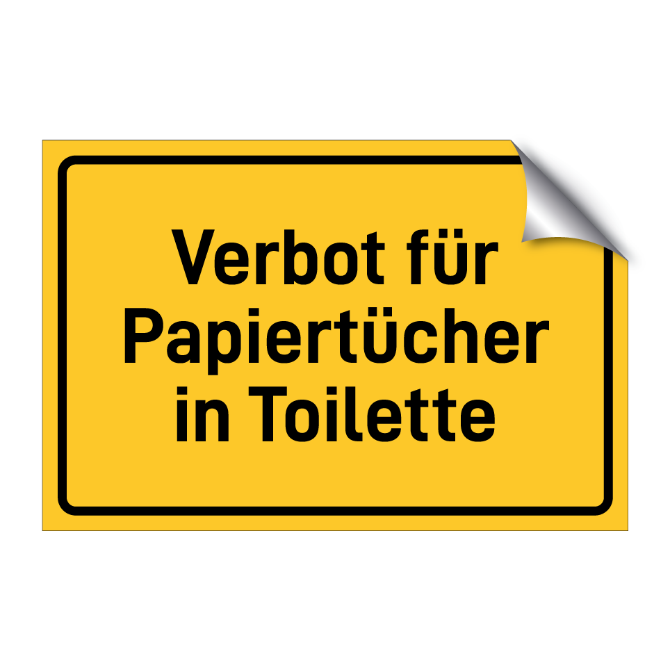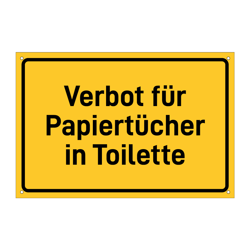 Hinweisschild mit dem Text Verbot für Papiertücher in Toilette
