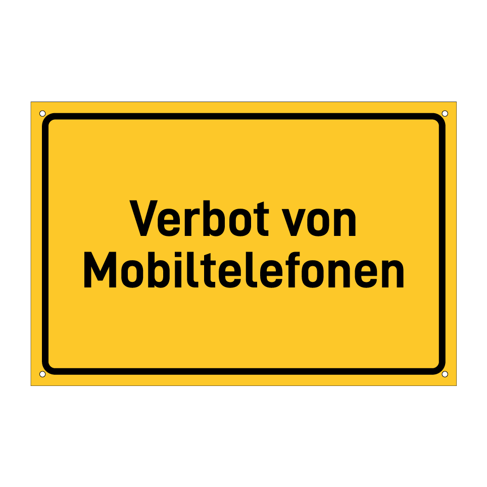 Hinweisschild mit dem Text Verbot von Mobiltelefonen