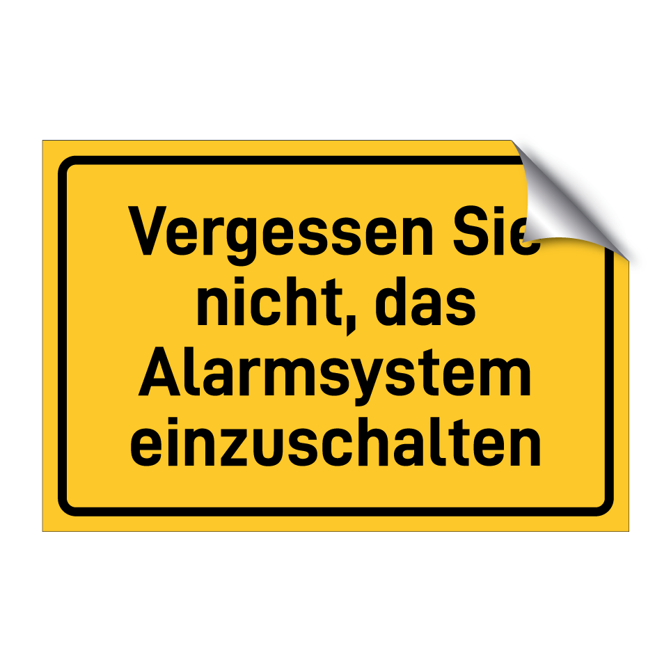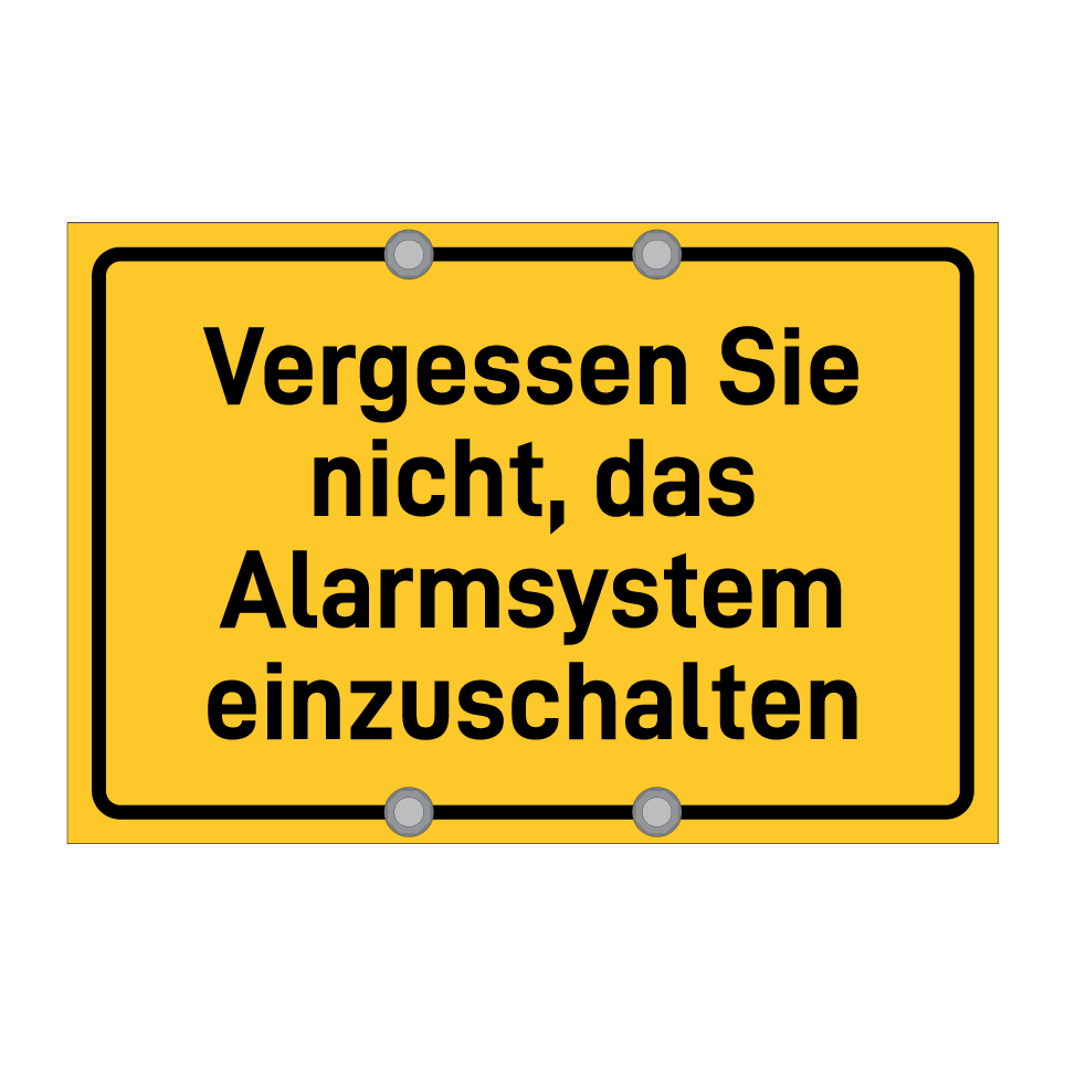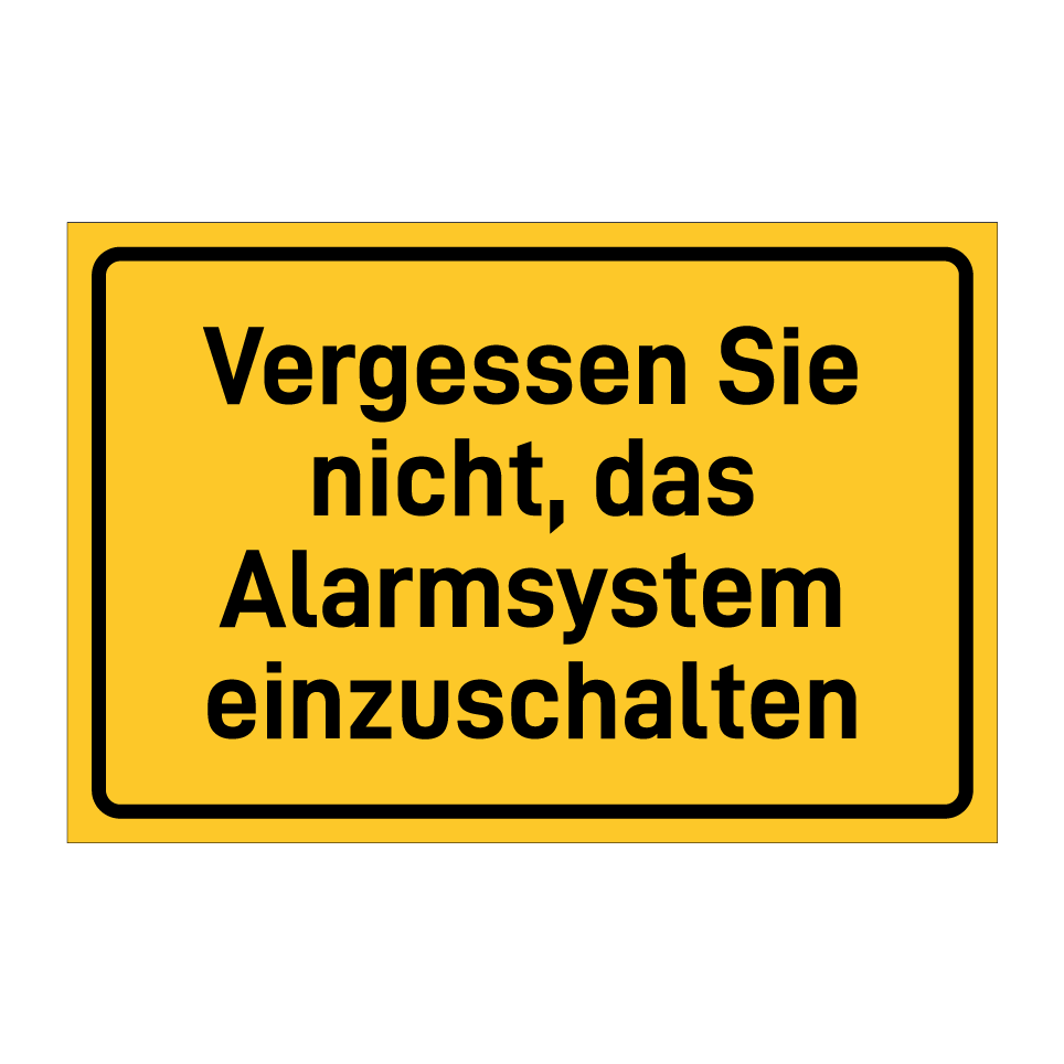 Hinweisschild mit dem Text Vergessen Sie nicht, das Alarmsystem einzuschalten