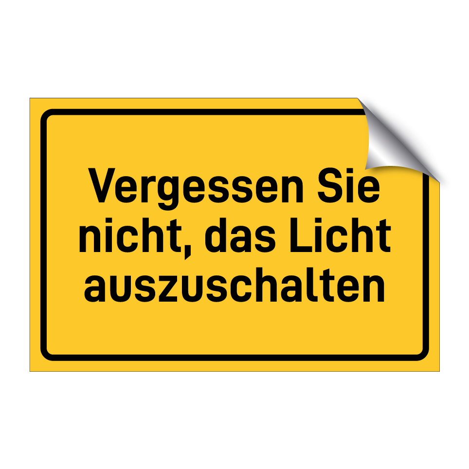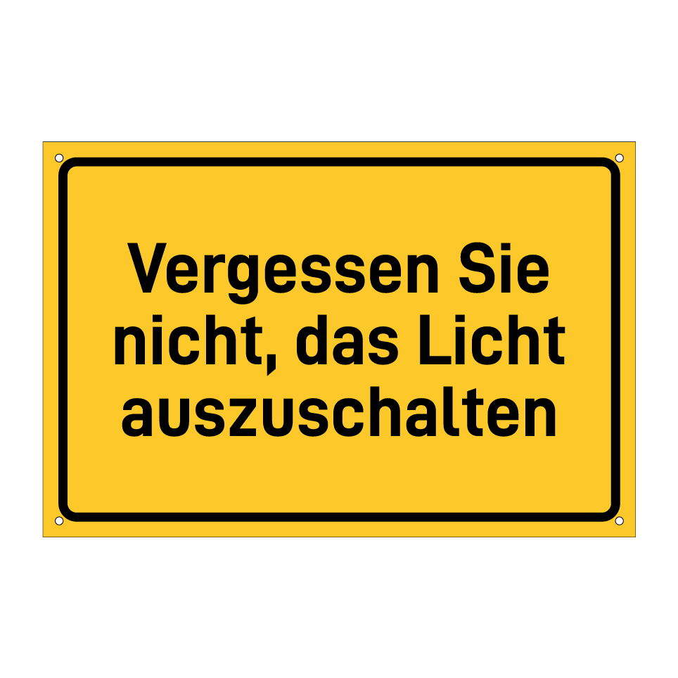Hinweisschild mit dem Text Vergessen Sie nicht, das Licht auszuschalten