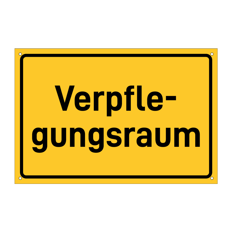 Hinweisschild mit dem Text Verpfle- gungsraum
