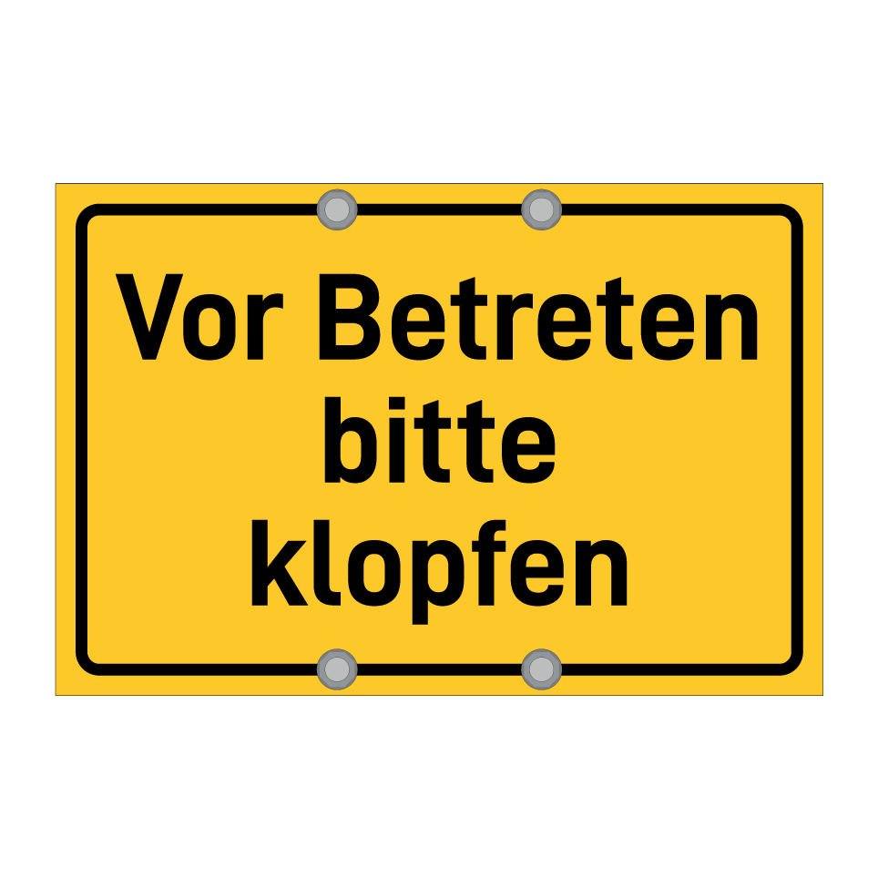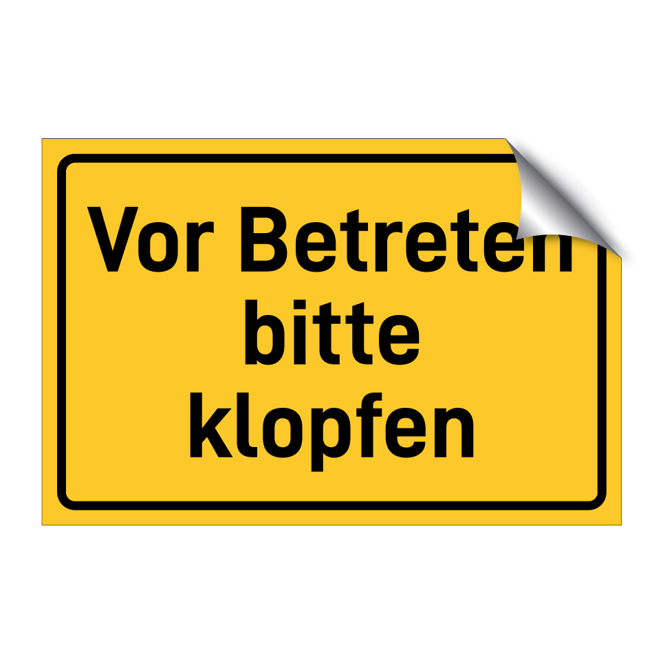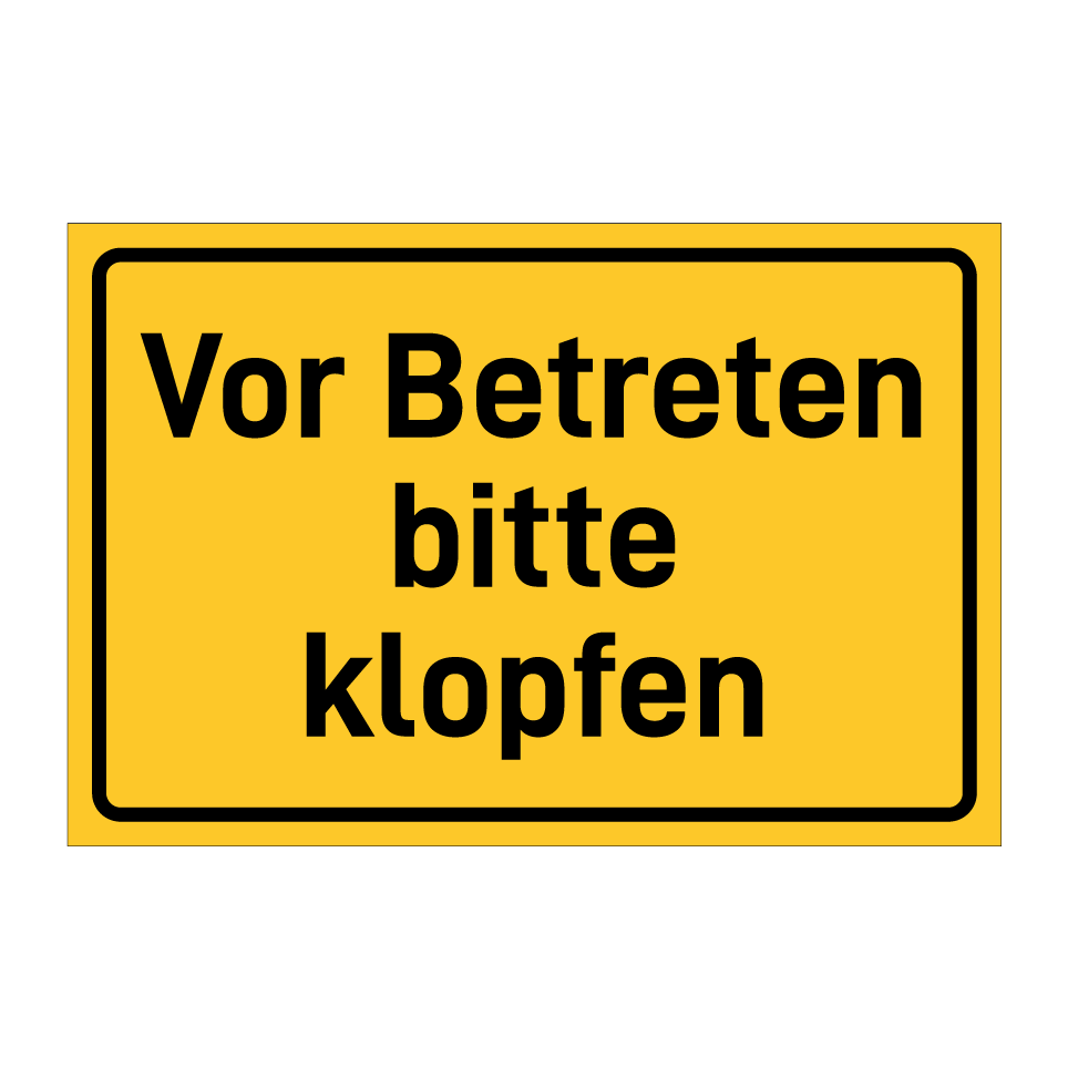 Hinweisschild mit dem Text Vor Betreten bitte klopfen