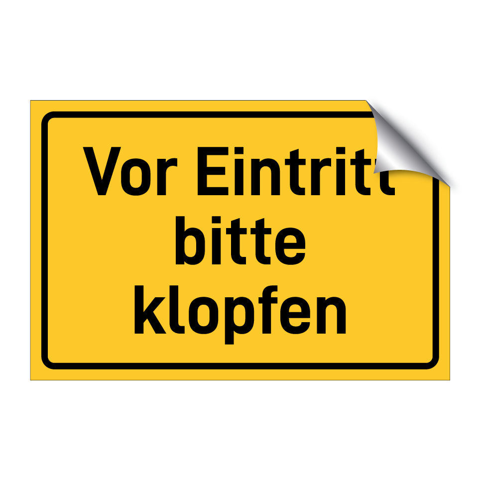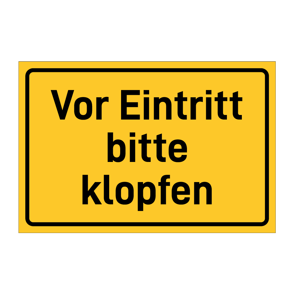 Hinweisschild mit dem Text Vor Eintritt bitte klopfen