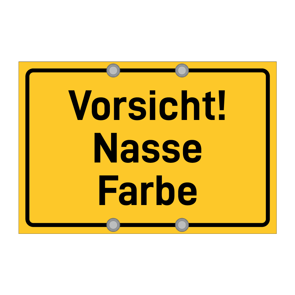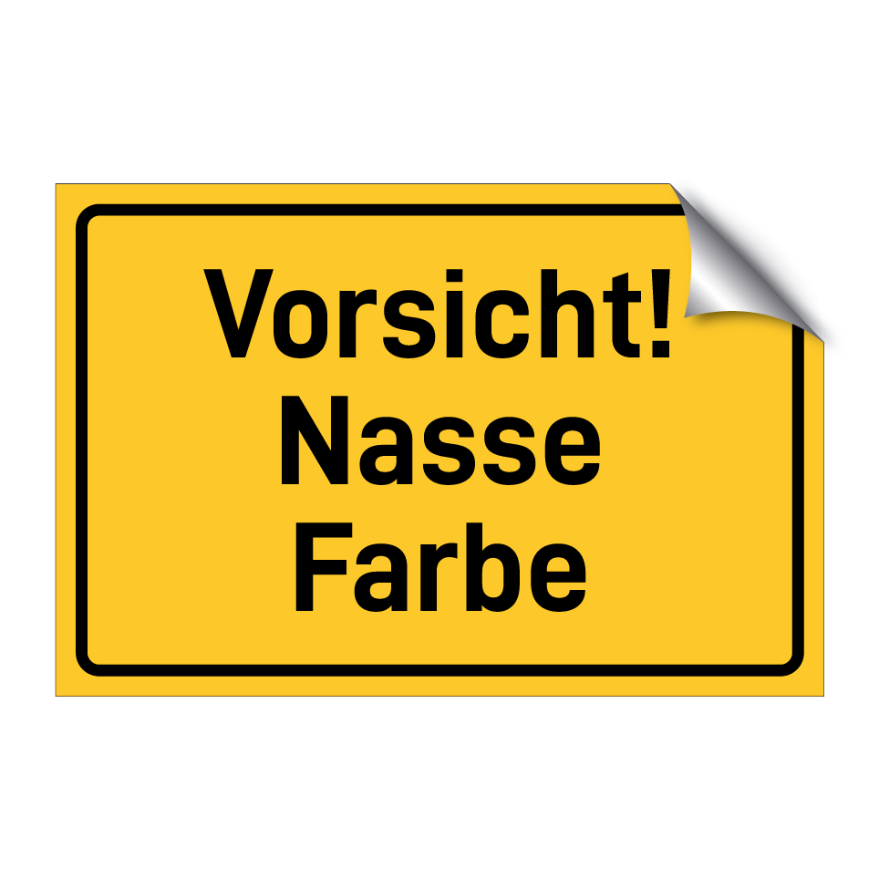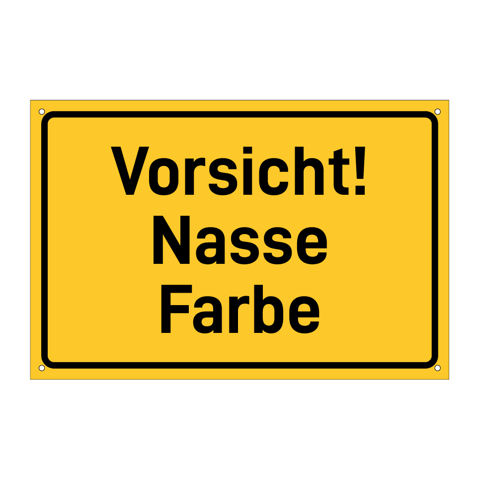 Hinweisschild mit dem Text Vorsicht! Nasse Farbe