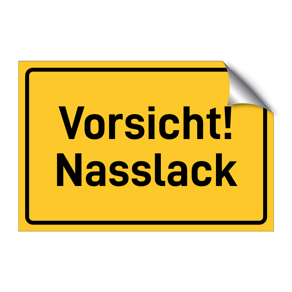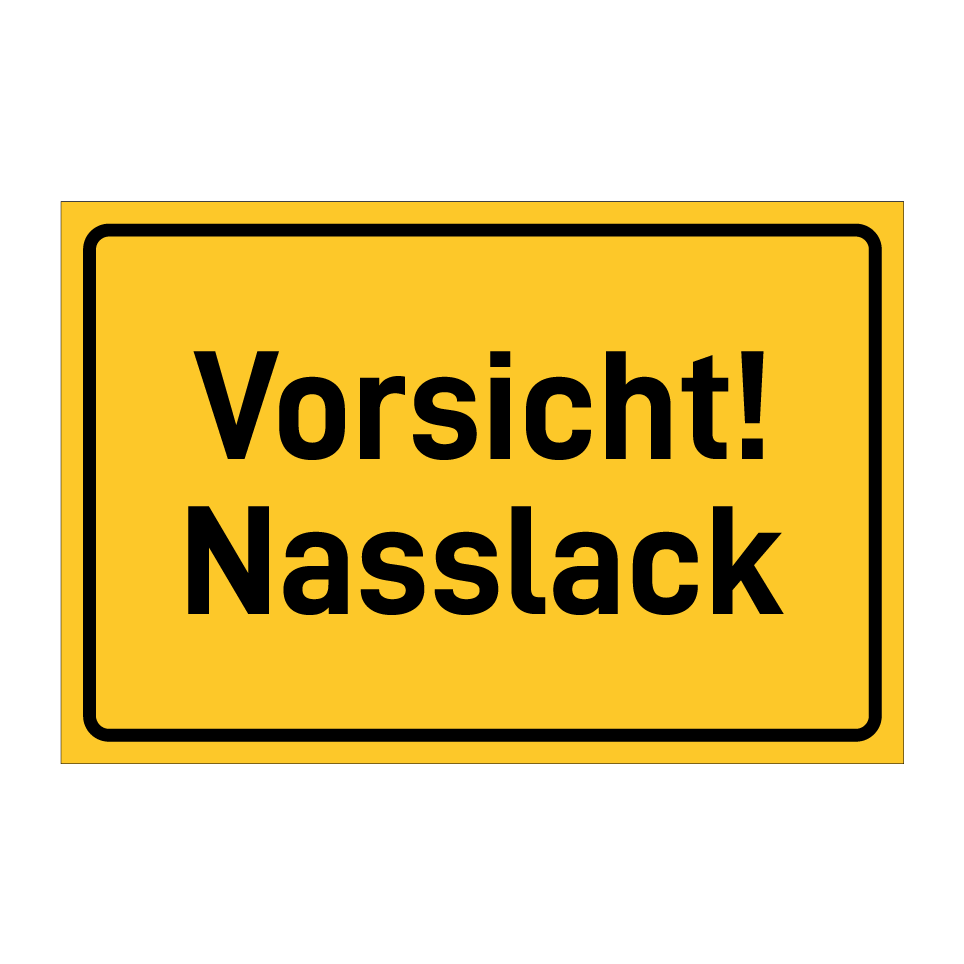 Hinweisschild mit dem Text Vorsicht! Nasslack