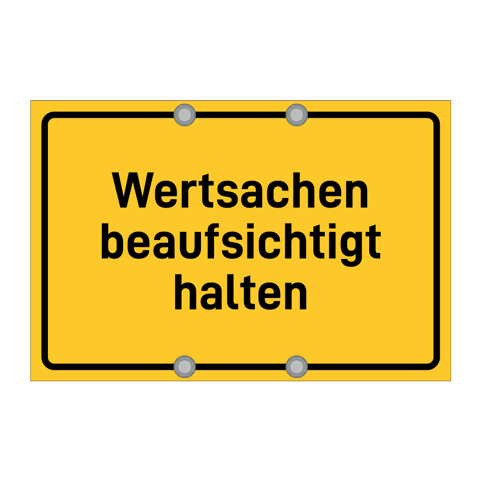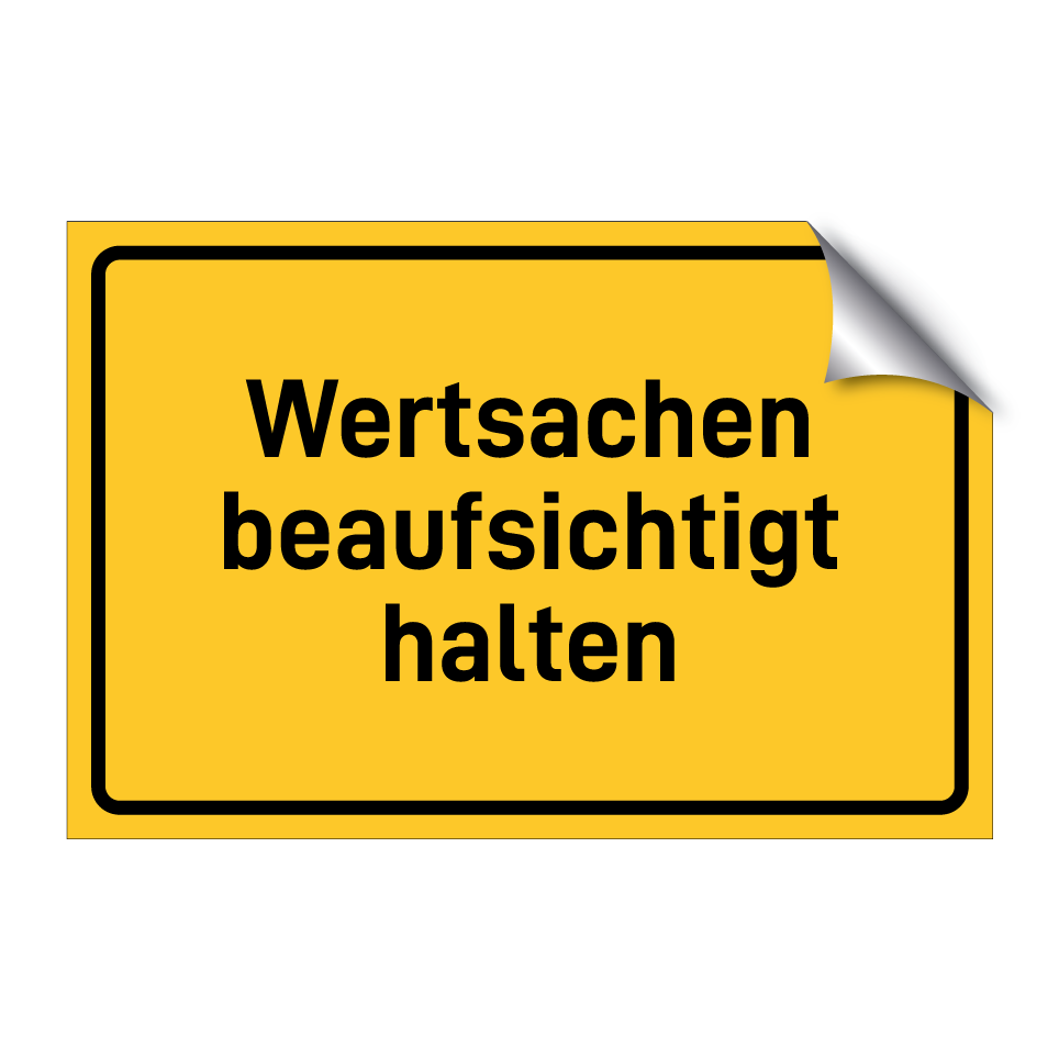 Hinweisschild mit dem Text Wertsachen beaufsichtigt halten