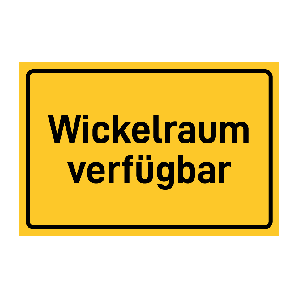 Hinweisschild mit dem Text Wickelraum verfügbar