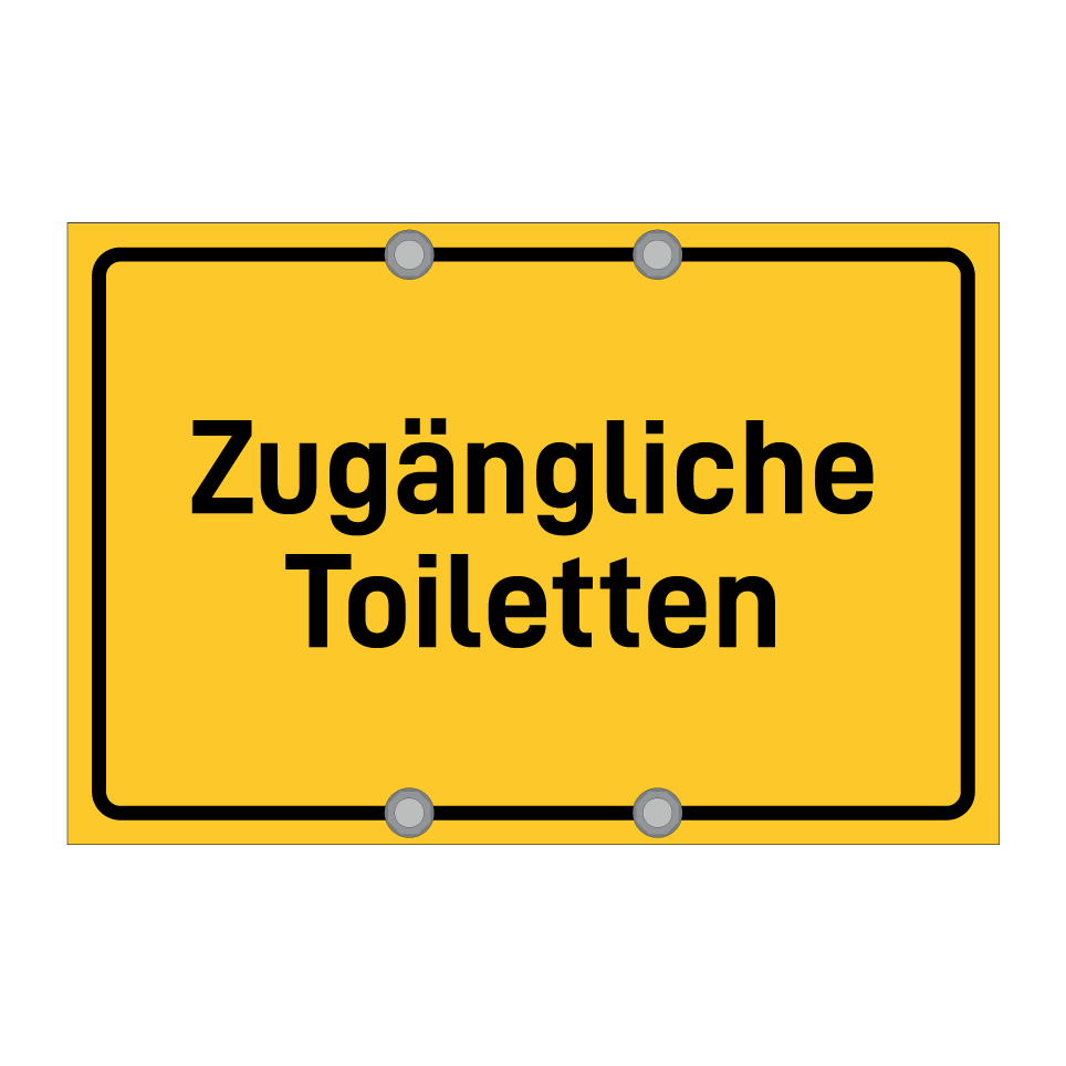 Hinweisschild mit dem Text Zugängliche Toiletten