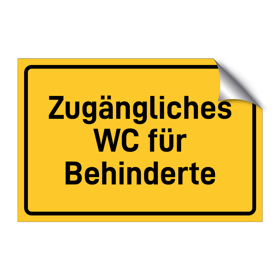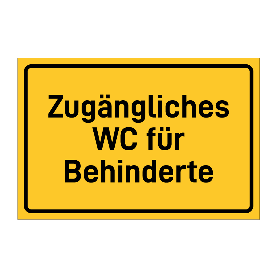 Hinweisschild mit dem Text Zugängliches WC für Behinderte