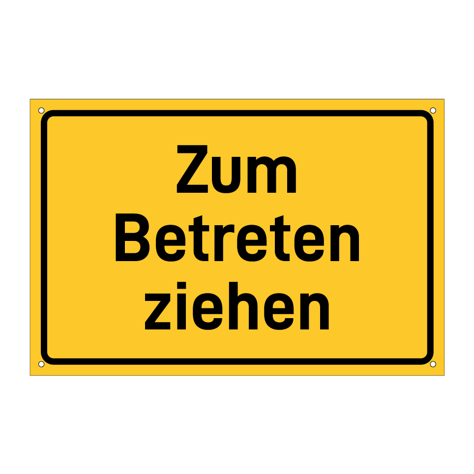 Hinweisschild mit dem Text Zum Betreten ziehen